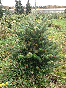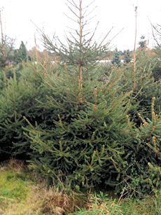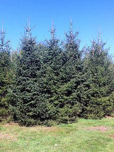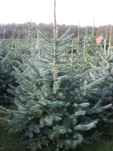 Foto's van enkele soorten kerstbomen die wij verkopen.